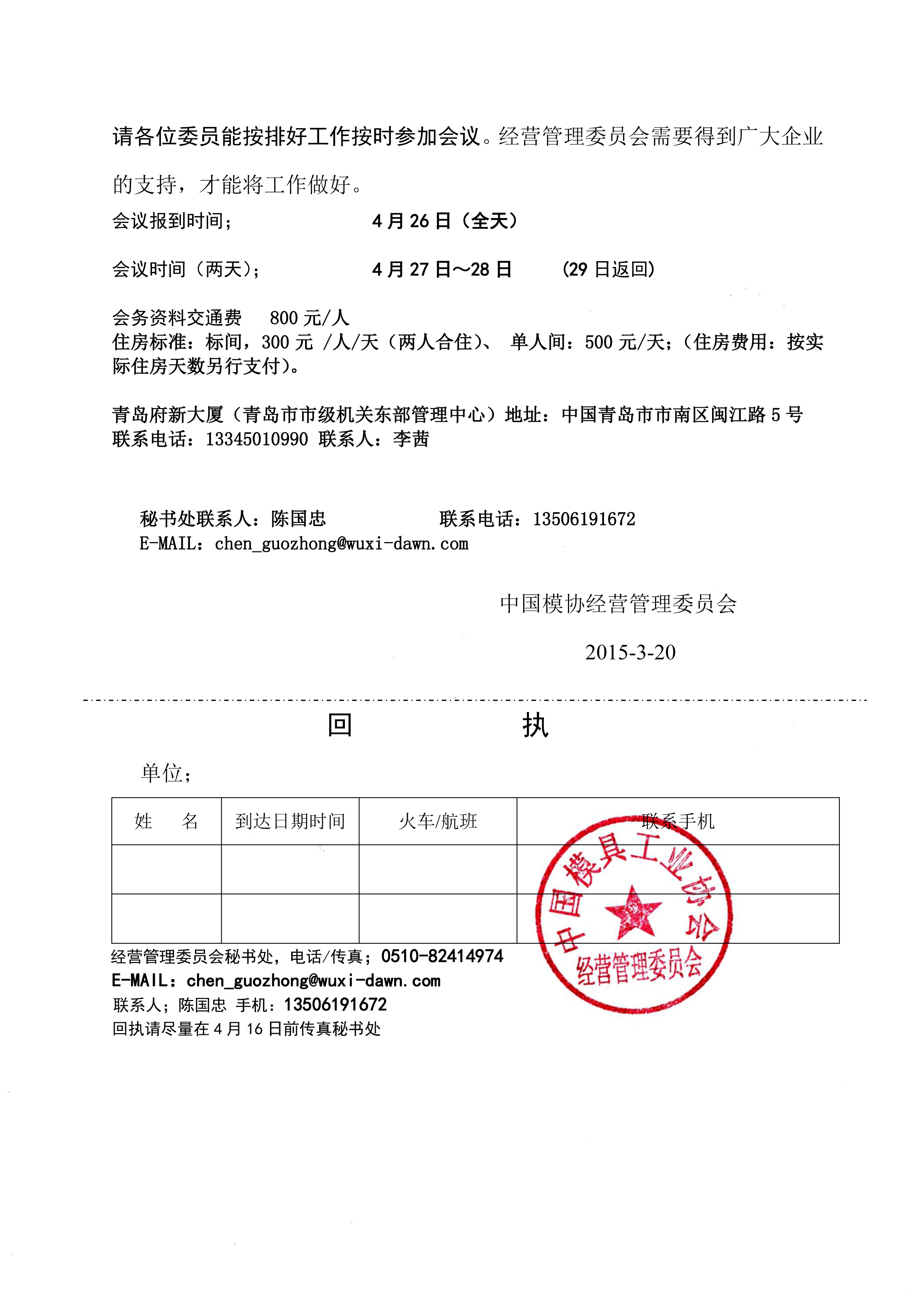 召開中國(guó)模協(xié)經(jīng)營(yíng)管理委員會(huì)2014年度年會(huì)的通知