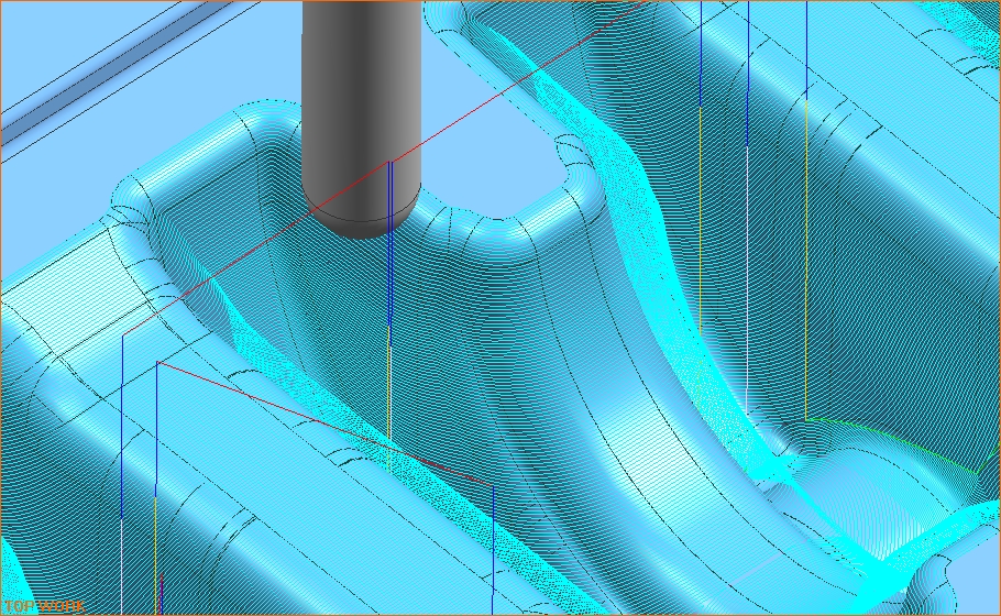 圖片(四)數(shù)控精加工程序刀路示意圖 圖片(五)清根刀路局部放大圖