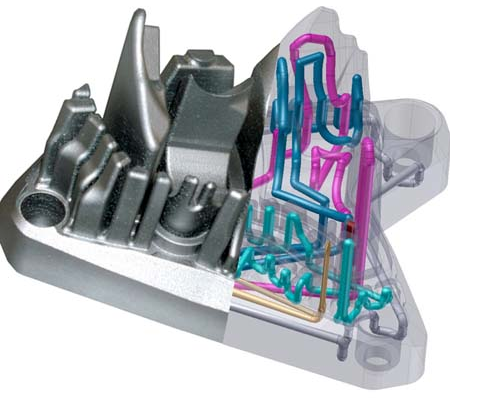 隨形冷卻水路的制造工藝,現(xiàn)在常采用選擇性激光熔化(SLM)技術(shù)。3D科學(xué)谷特選取國(guó)外和國(guó)內(nèi)兩家領(lǐng)先企業(yè),分享隨形冷卻方面的案例。