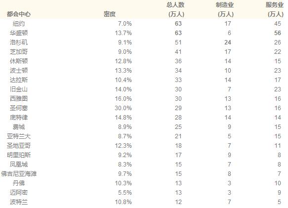 下面是先進產業(yè)在各個都會區(qū)的情況:密度是指先進產業(yè)的工作人數(shù)占當?shù)乜偣ぷ魅藬?shù)的比例,總人數(shù)是指先進產業(yè)的從業(yè)總人數(shù),制造業(yè)是指制造先進產業(yè)的從業(yè)人數(shù),服務業(yè)是指服務先進產業(yè)的從業(yè)人數(shù)。